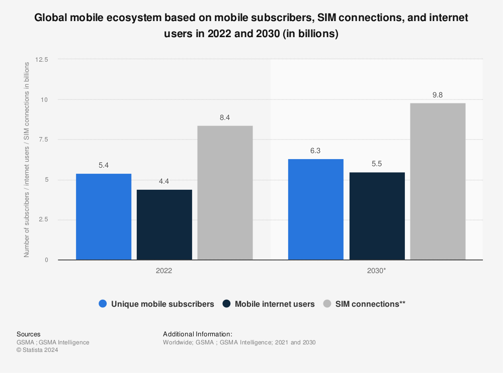 According to the latest Statista data, there were 4.4 billion mobile internet users in 2022 and the number is expected to reach 5.5 billion by 2030.