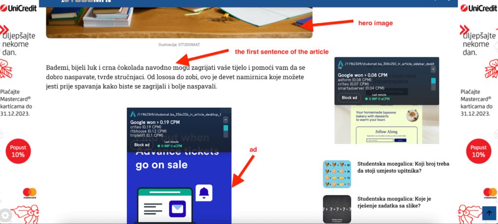 La configuración de los anuncios se creó teniendo en cuenta la naturaleza de blog extenso del sitio web. Por ejemplo, colocar el anuncio justo después del primer párrafo es la forma más inofensiva y eficaz de espacio publicitario, porque capta la atención de los usuarios de forma natural (como lo haría una imagen principal) y es más probable no pasarlo por alto y tener la oportunidad de interactuar con él.