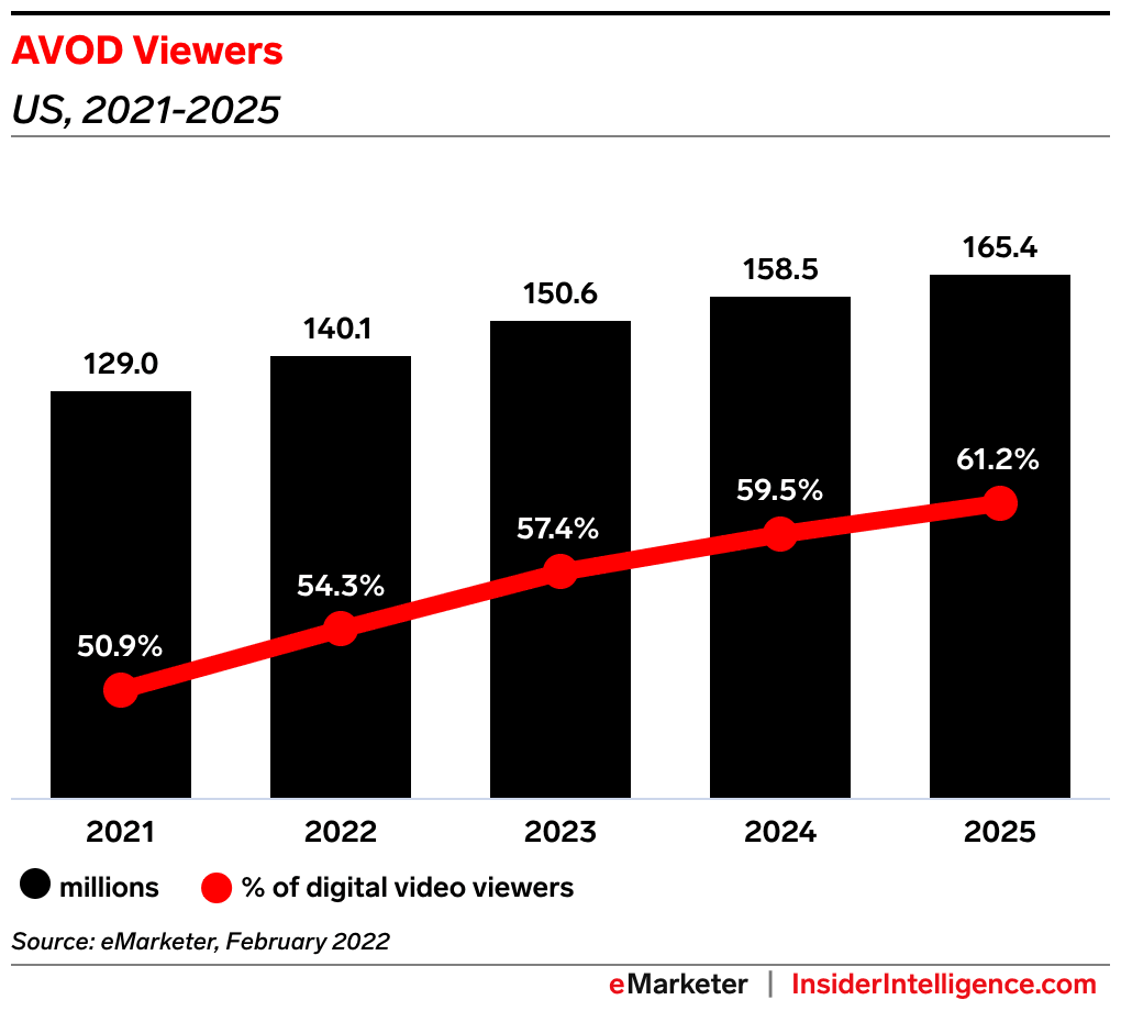 AVOD represents an opportunity to reach a wider audience. In fact, US AVOD viewers will reach 165 million in 2025.