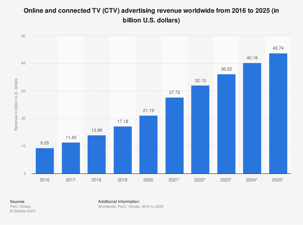 CTV advertising spend is expected to reach 43.74 billion U.S. dollars by the end of 2025.