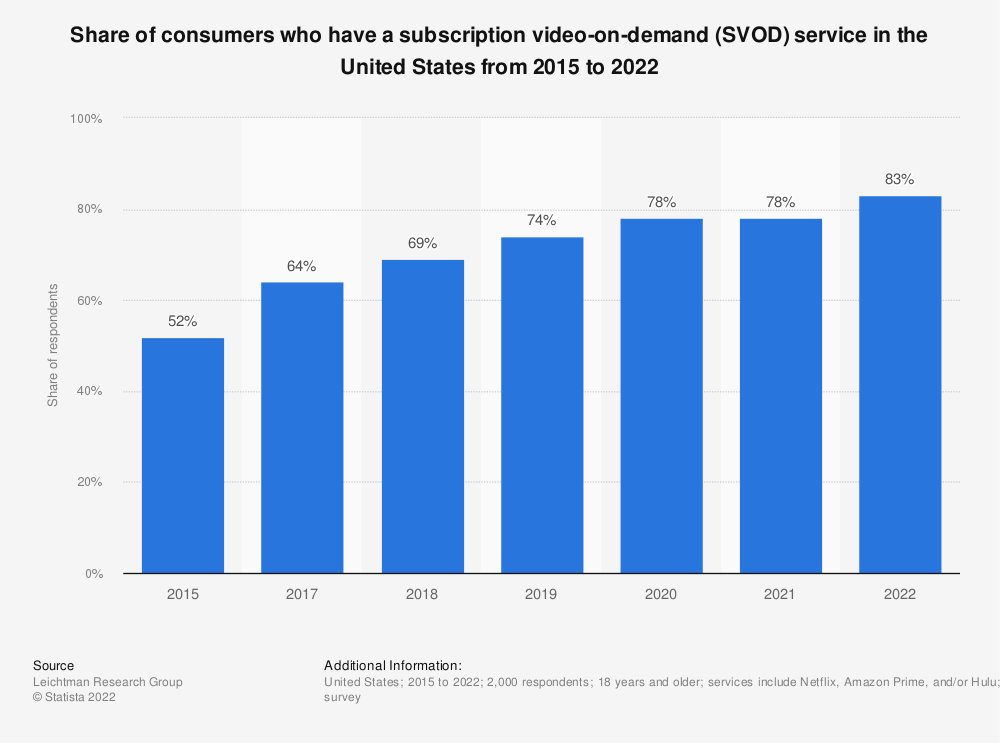 Subscription video-on-demand streaming services are based on a subscription fee. For example, Netflix and Amazon provide various ad monetization options to broadcasters for their video content. The subscription-based video-on-demand accounted for 83% of US-based consumers in 2022.