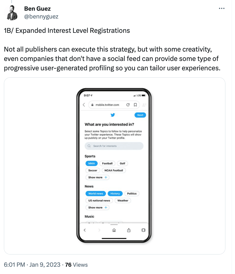 The challenge is that not all publishers can execute this strategy due to a lack of content diversity to deliver interesting topics to users in the first place.