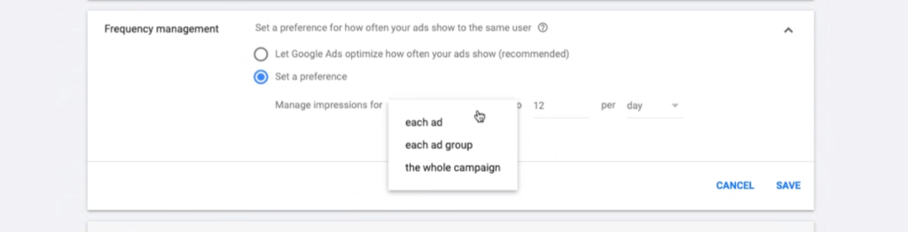 For display ads, frequency capping limits the number of impressions for an individual user to have on the campaign per day, week, or month.