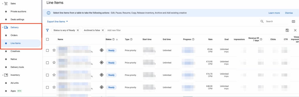 For example, a publisher will receive a request from the buyer to purchase an ad space on his website. This request is called an order and should have one or more line items linked to it. For instance, a buyer may want to purchase a part of the inventory or a programmatic deal (like programmatic guaranteed).