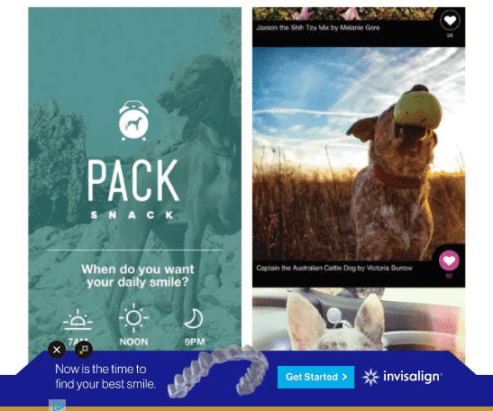 For example, this Invisalign corporate ad was shown in a Modern Dog Magazine article. It only highlights the brand’s name, logo, and a brief slogan to boost brand awareness.