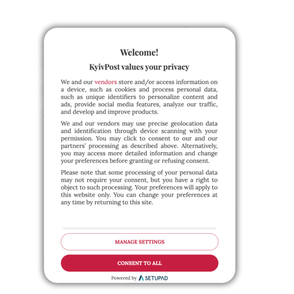 - Consent Management Platform (CMP): Implement a robust CMP that clearly explains data usage policies and allows users to control their data preferences. Choose a platform that is both IAB and Google-approved, like Setupad.