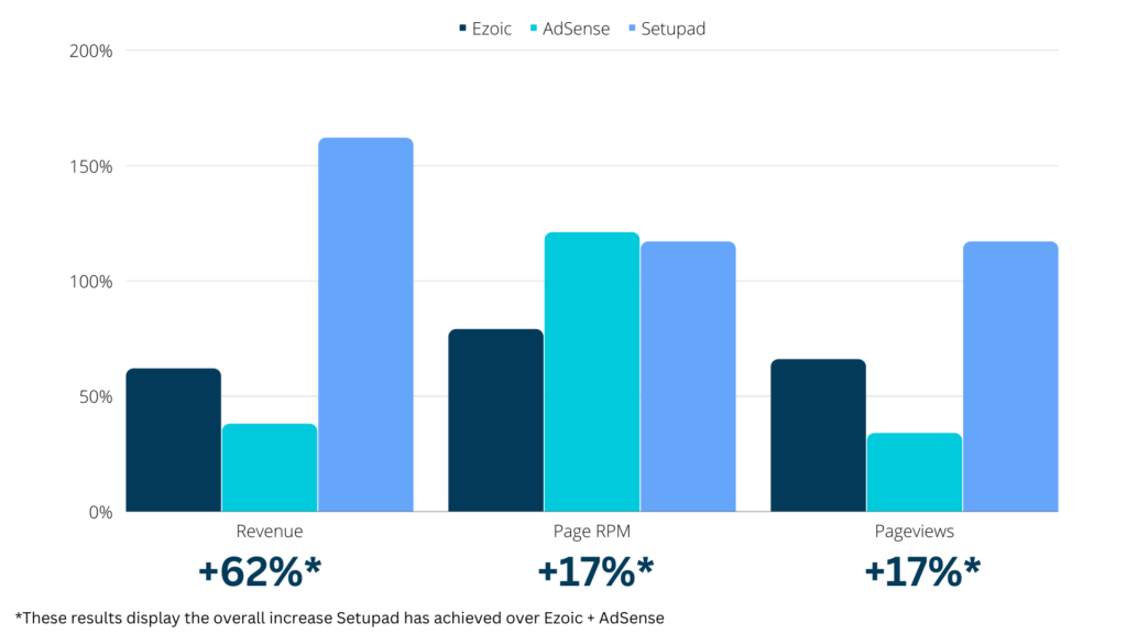 How did Setupad increase ad revenue by 62% over the popular Ezoic monetization platform and improve the UX on azrhymes.com?