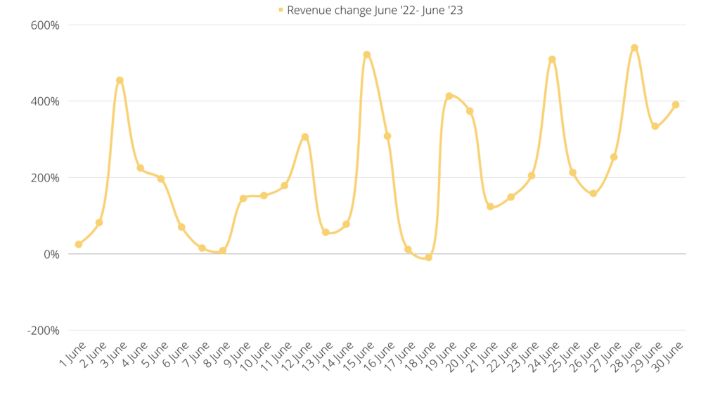 У червні 2022 року клієнт мав інше рішення для монетизації. У червні 2023 року ми порівняли дані з внутрішньої панелі попереднього партнера з монетизації з даними Setupad.